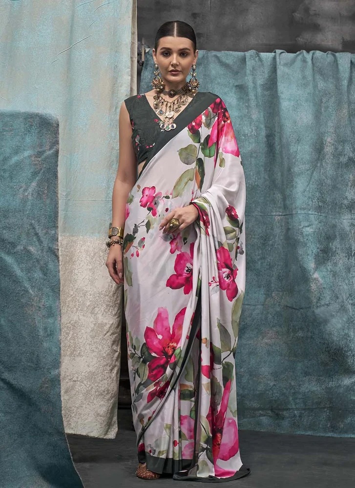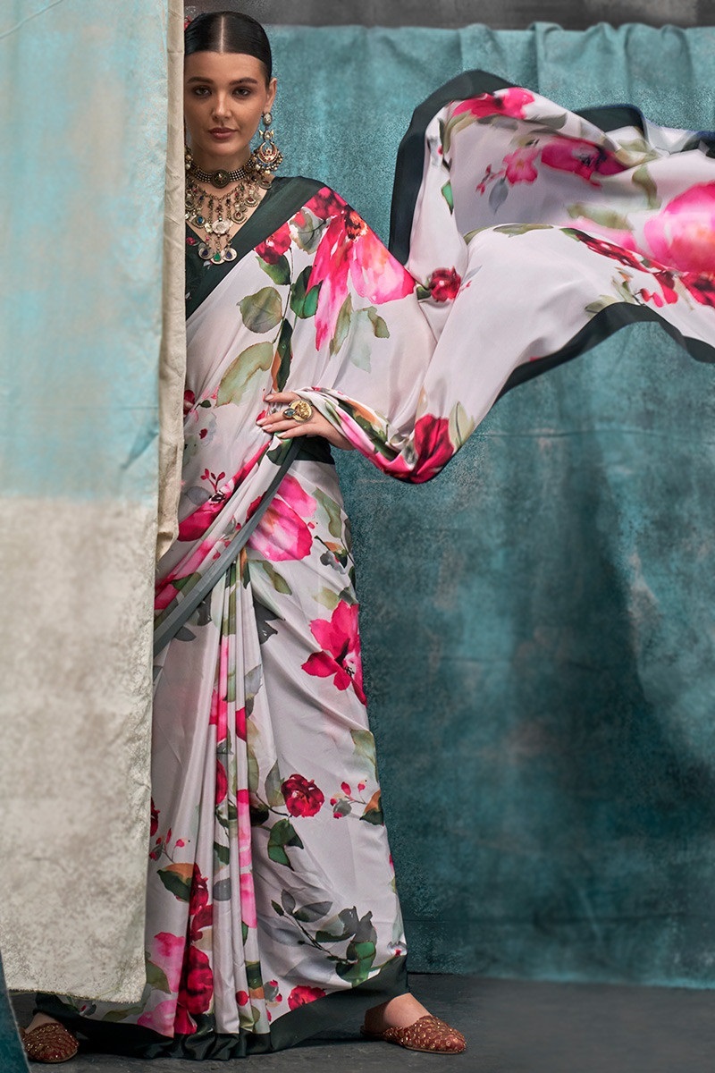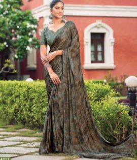 পিওর সিল্ক ক্রেপ প্রিন্টেড শাড়ি