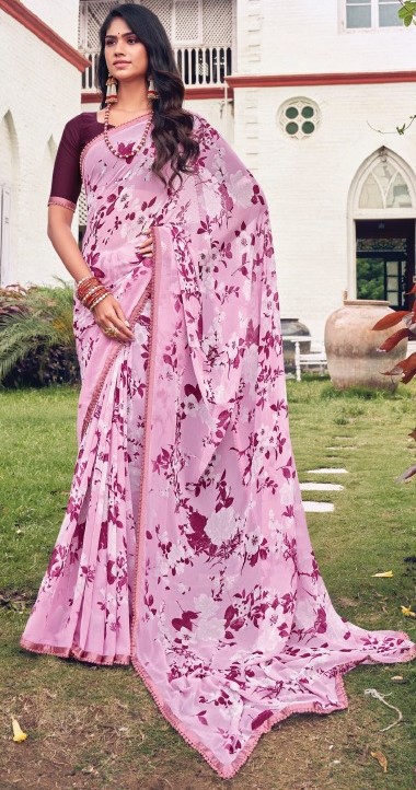 ফ্যাব্রিক হেভি জর্জেট ফ্যান্সি লেস সহ।