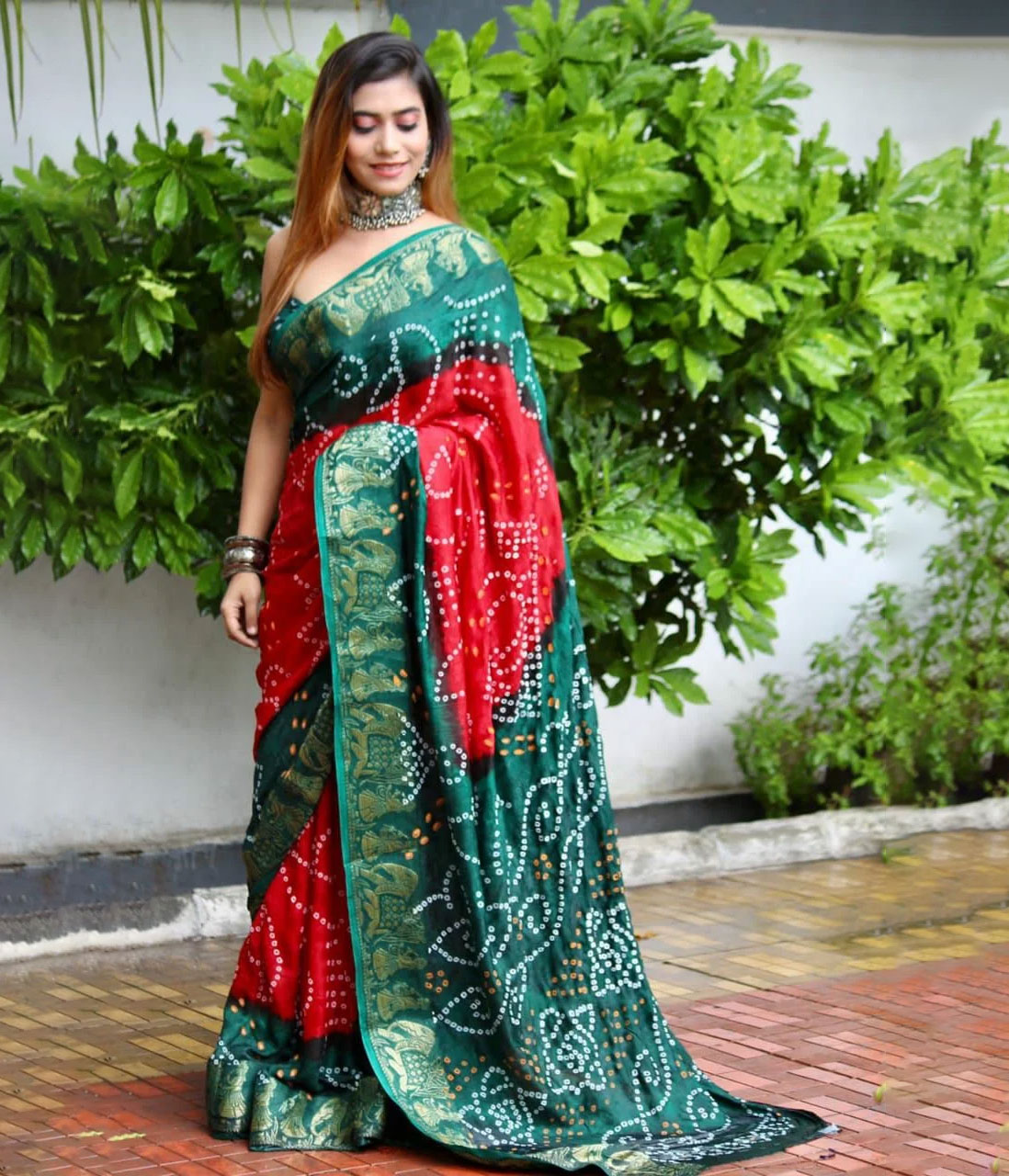 বান্ধিজ ডিজাইনের ব্লাউজ এবং জরি বোনা বর্ডার।