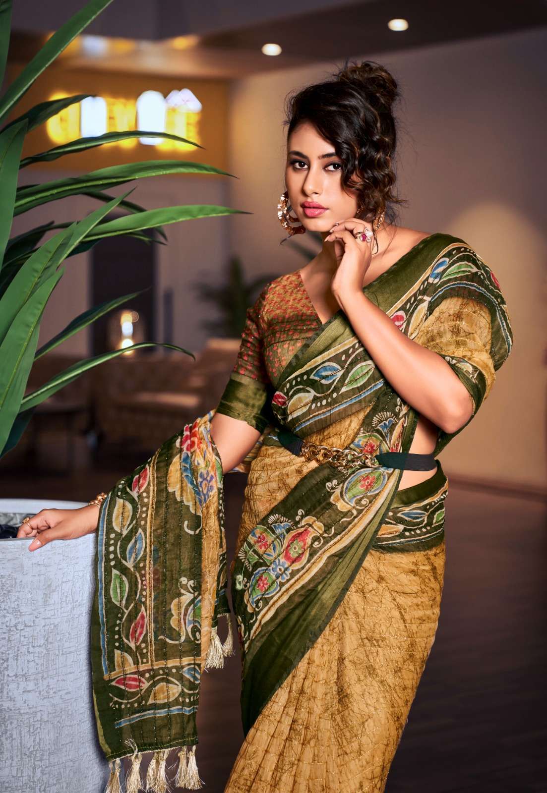 কটন সাটিন পাট্টা শাড়ি সাথে ডিজাইনার ব্লাউজ।