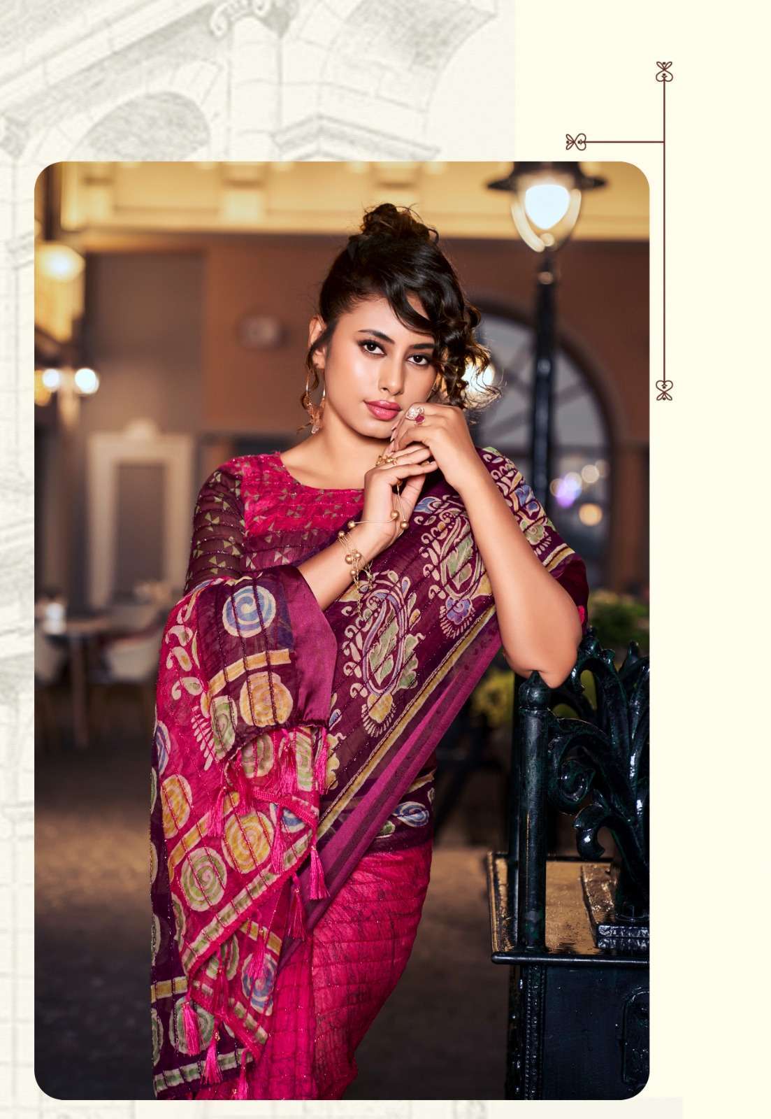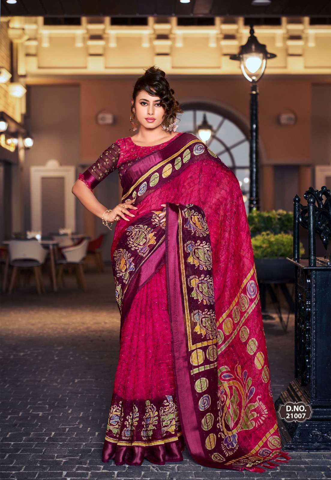 কটন সাটিন পাট্টা শাড়ি সাথে ডিজাইনার ব্লাউজ।