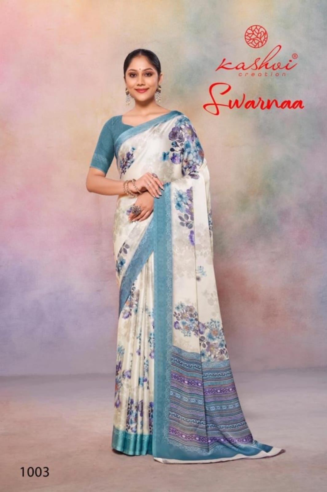 সাটিন জর্জেট শাড়ি সাথে ডিজাইনার ব্লাউজ।